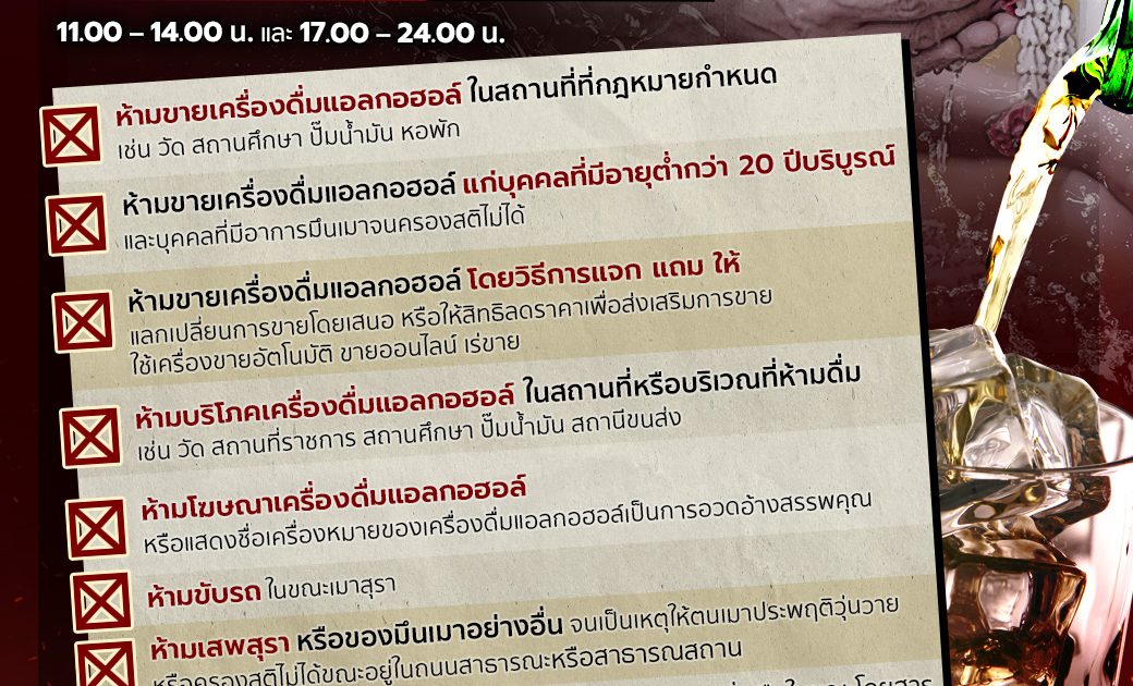 ห้ามขายเครื่องดื่มแอลกอฮอล์ ในสถานที่ที่กฎหมายกำหนด เช่น วัด สถานศึกษา ปั๊มน้ำมัน หอพัก