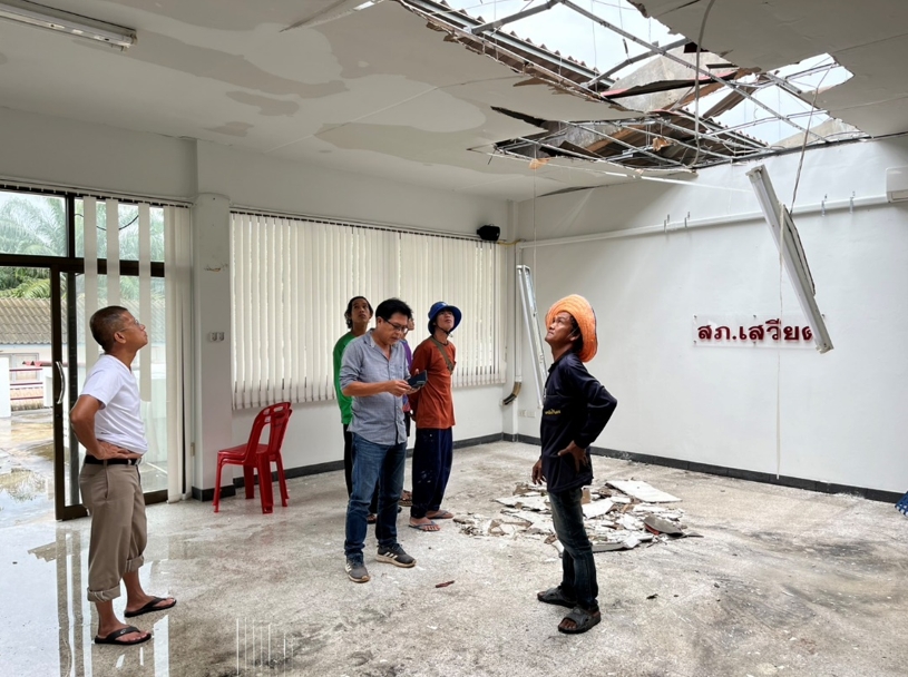 ประสานงานดำเนินการซ่อมแซมอาคารที่ทำการ สภ.เสวียด ได้รับความเสียหายเหตุพายุฝนพัด
