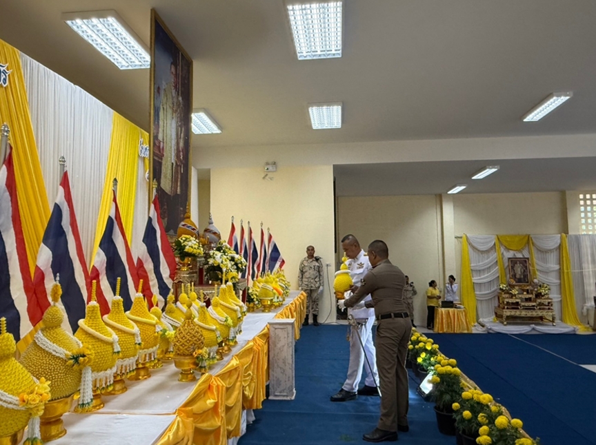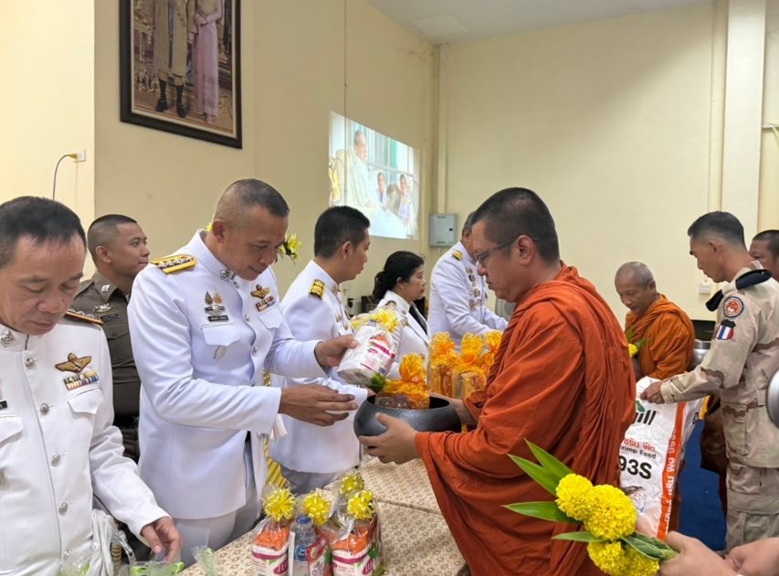 5 ธ.ค.67 พ.ต.อ.สุรินทร์ ใจแน่ ผกก.สภ.เสวียด พร้อมข้าราชการตำรวจงานอำนวยการ เข้าร่วมพิธีตักบาตรและวางพานพุ่ม เนื่องในวันที่ 5 ธันวาคม วันคล้ายวันพระราชสมภพของพระบาทสมเด็จพระบรมชนกาธิเบศร มหาภูมิพลอดุลยเดชมหาราช บรมนาถบพิตร วันชาติ และวันพ่อแห่งชาติ