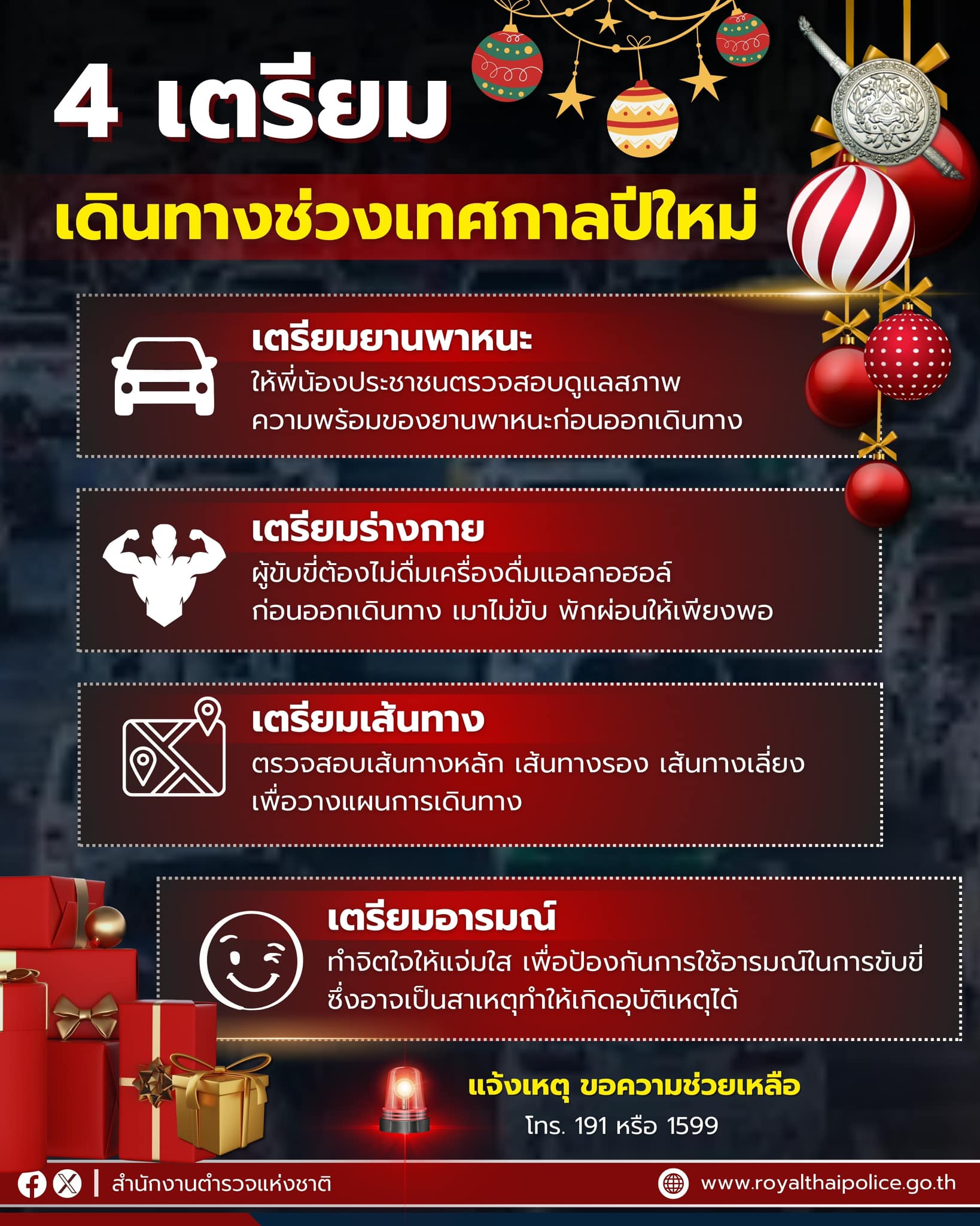 4 เตรียม ทำให้พร้อมก่อนเดินทางช่วงเทศกาล #ปีใหม่2568พล.ต.ท.สำราญ นวลมา ผู้ช่วย ผบ.ตร. ฝากถึงพี่น้อง