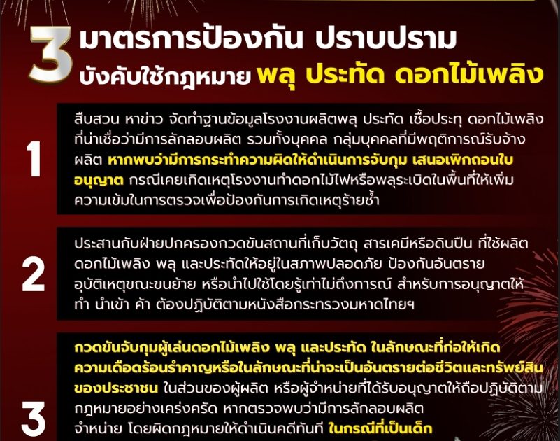 3 มาตรการป้องกัน ปราบปราม บังคับใช้กฎหมาย พลุ ประทัด ดอกไม้ไฟ ![]()