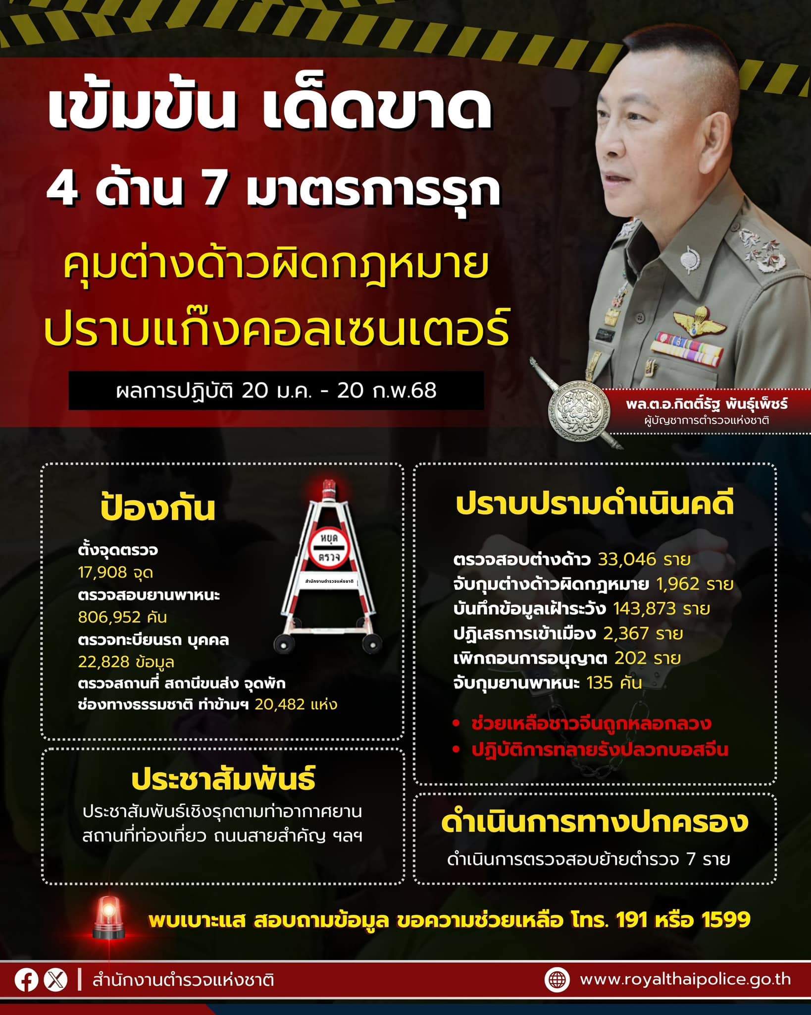 เดินหน้าปฏิบัติตาม 7 มาตรการ ปราบปรามต่างด้าวผิดกฎหมาย และปราบปรามแก๊งคอลเซนเตอร์